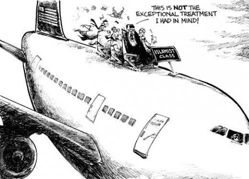 FWM, Flying While Muslim, is the latest anachronism to be inflicted on a group of people, obviously this time Muslims, with the added twist that it can strip a person of his citizenship depending on the time of its imposition. For those Muslims who are outside the US, and you’ve got to wonder how  were they able to “leave” by a plane, but not be allowed to return the same way, being put on a ‘no fly list’ or ‘terrorist watch list’ means not being able to return to your country and if necessary  to defend oneself under the legal system of your citizenship; the State’s way of killing two birds with one stone.  Being able to claim the guilt or innocence of someone without the necessity of that being proven in court and simultaneously perpetuating the canard that ‘all terrorists are Muslims’ is the modus operandi of a racist policy that predates even DWB. So when the government, who is solely responsible for placing people on a list that prohibts them from flying, is called out on this what do  they say?