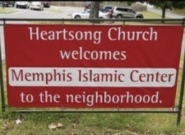 A few days later, a sign appeared in front of the church. “Heartsong Church welcomes Memphis Islamic Center to the neighborhood,” it read.