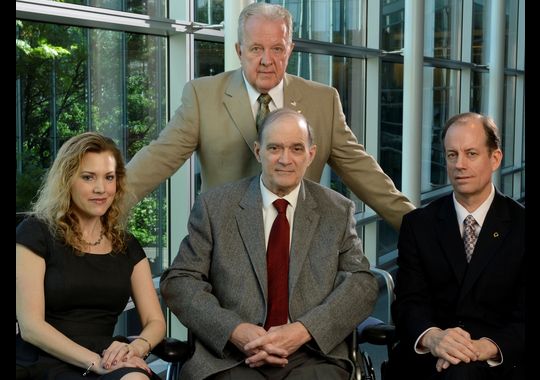 Lawyer Jesselyn Radack, left, with whistle-blowers J. Kirk Wiebe, standing; William Binney, center; and Thomas Drake.(Photo: H. Darr Beiser, USA TODAY)