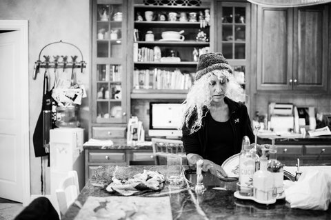 Donning a blond wig, Laurel Borowich did the dishes after dinner. Chappaqua, N.Y. February 2013.