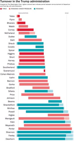 There’s the even worse spectacle that just after a year in office scores of people have resigned or been fired under Mr. Trump either because of ideological differences or because they weren’t inclined to bow far enough at the waist as a sign of allegiance to the person, Donald Trump and not to the institutions his office represents. Yet the country labors on with Trump as its head and the beginning of his second year in office seems destined to be as bad, if not worse than his first year.